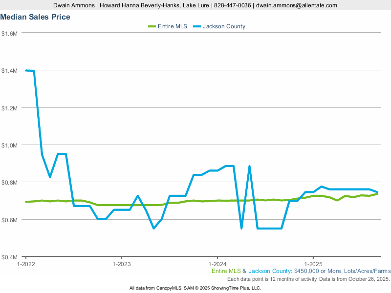 Here is the latest updated stats for large land sales in Jackson County, NC from Canopy MLS.