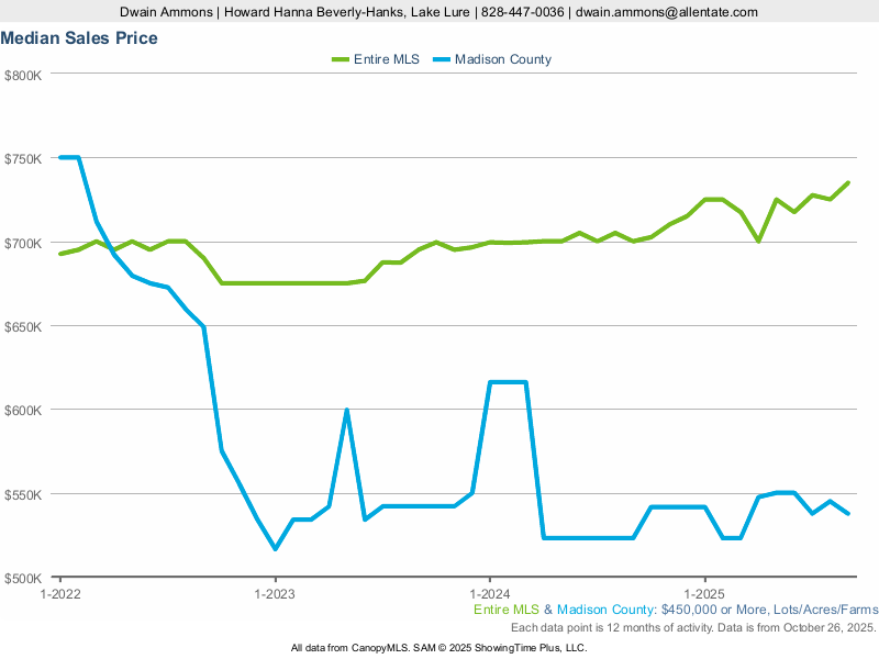 Here is the latest stats for large large land sales in Madison County, NC from Canopy MLS.